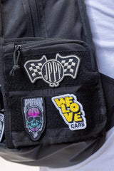 Inspiration aus dem Motorsport! Schultergurte in ergonomischer Form, damit gar nichts verrutscht. Atmungsaktives Rückenteil für angenehmes Tragen. Tauchen kannst damit nicht, aber leichten Regen hält das Wasserabweisende Material ab und deine Sachen bleiben trocken. Für den ganz wertvollen Kram, gibts eine versteckte Tasche auf der Rückseite…aber pssst.